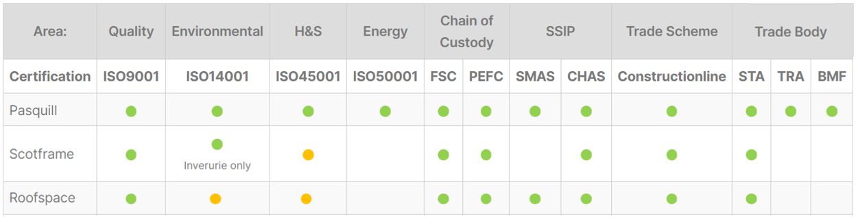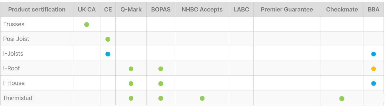 Saint-Gobain Off-Site Solutions believes in the value of third party verification and certification. We hold certification at business, brand and product level, depending on where is most appropriate. The below tables are a summary of the testing currently held or pending.